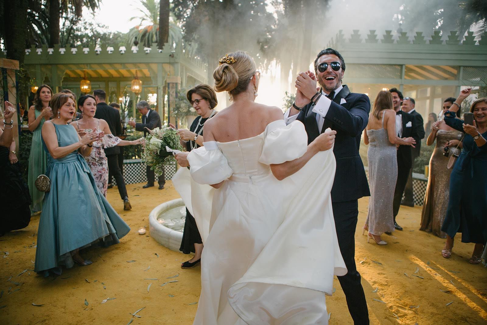 Celebrada en la majestuosa Villa Luisa, esta boda se convirtió en uno de los eventos del año en Sevilla: sofisticada, moderna y con una estética que evocaba directamente el universo de Sexo en Nueva York.